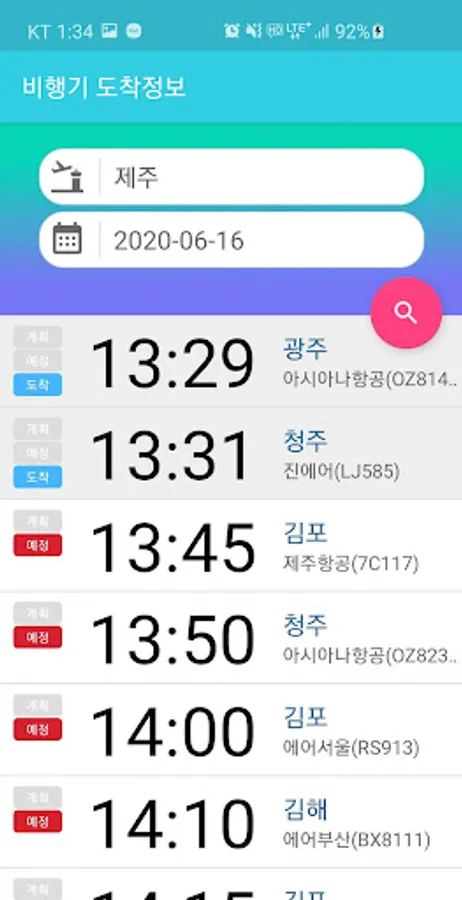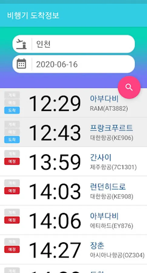 Flight arrival information is divided into [Plan], [Scheduled], and [Arrival].