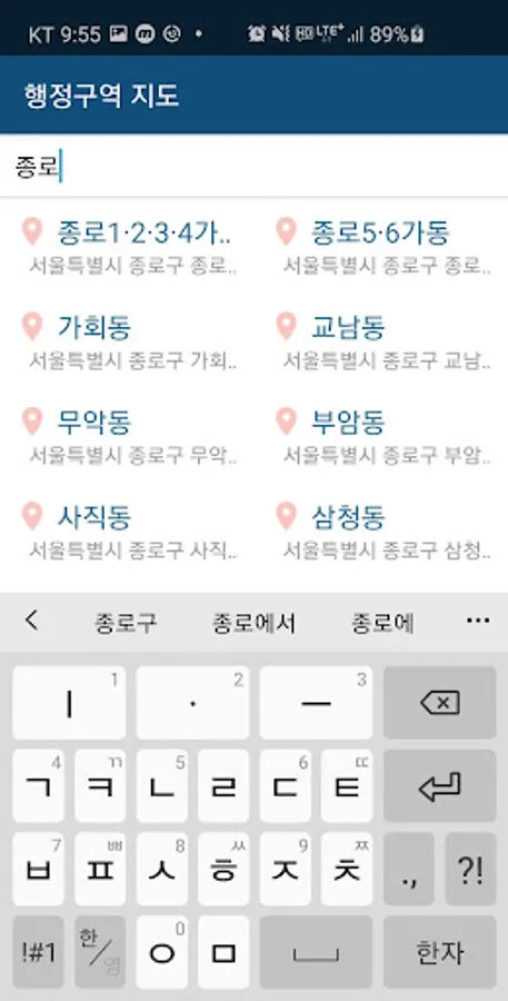 When you move the screen, "Eup, Myeon-dong" is displayed and "Si, Gun-gu" is also displayed.
