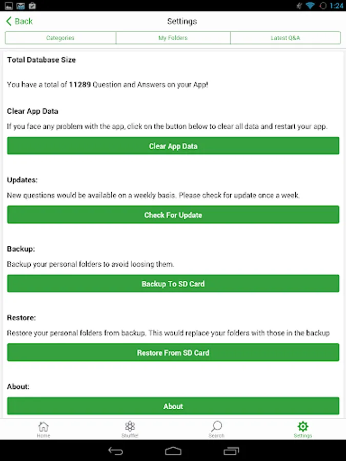 - Backup your personal folders and questions to SD Card so that you never loose them!