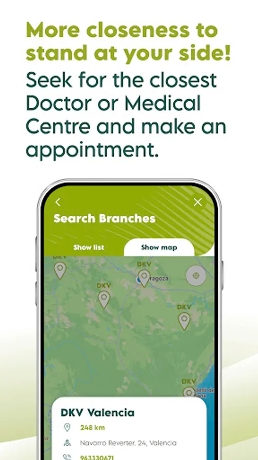 Location: to help you to find the closest Doctors, Medical Centres and DKV Local Offices.