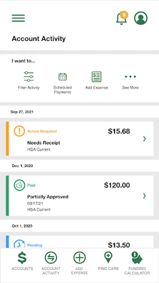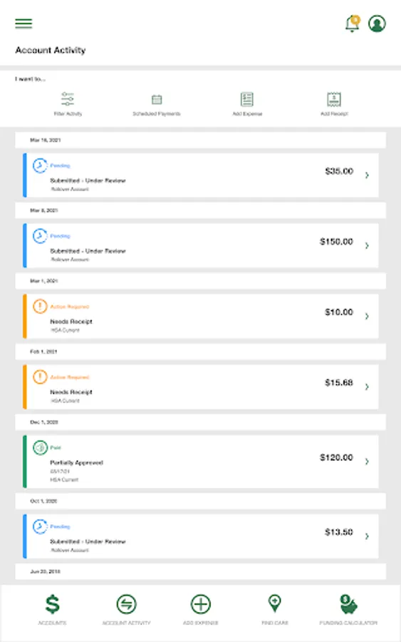 • Benefit Health Account balances and details