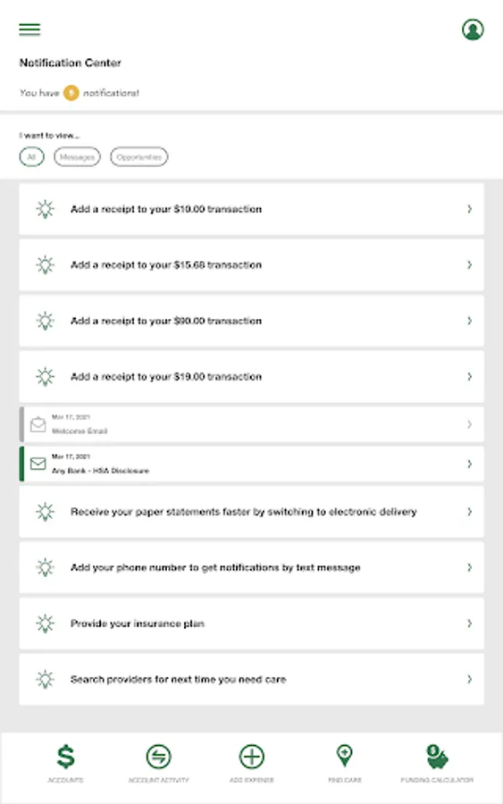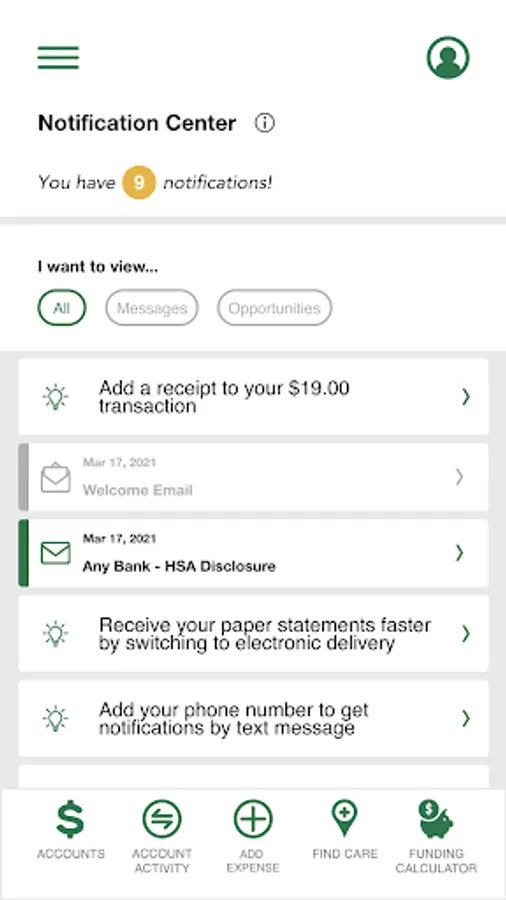 • Ability to fund HSA account from checking/savings account