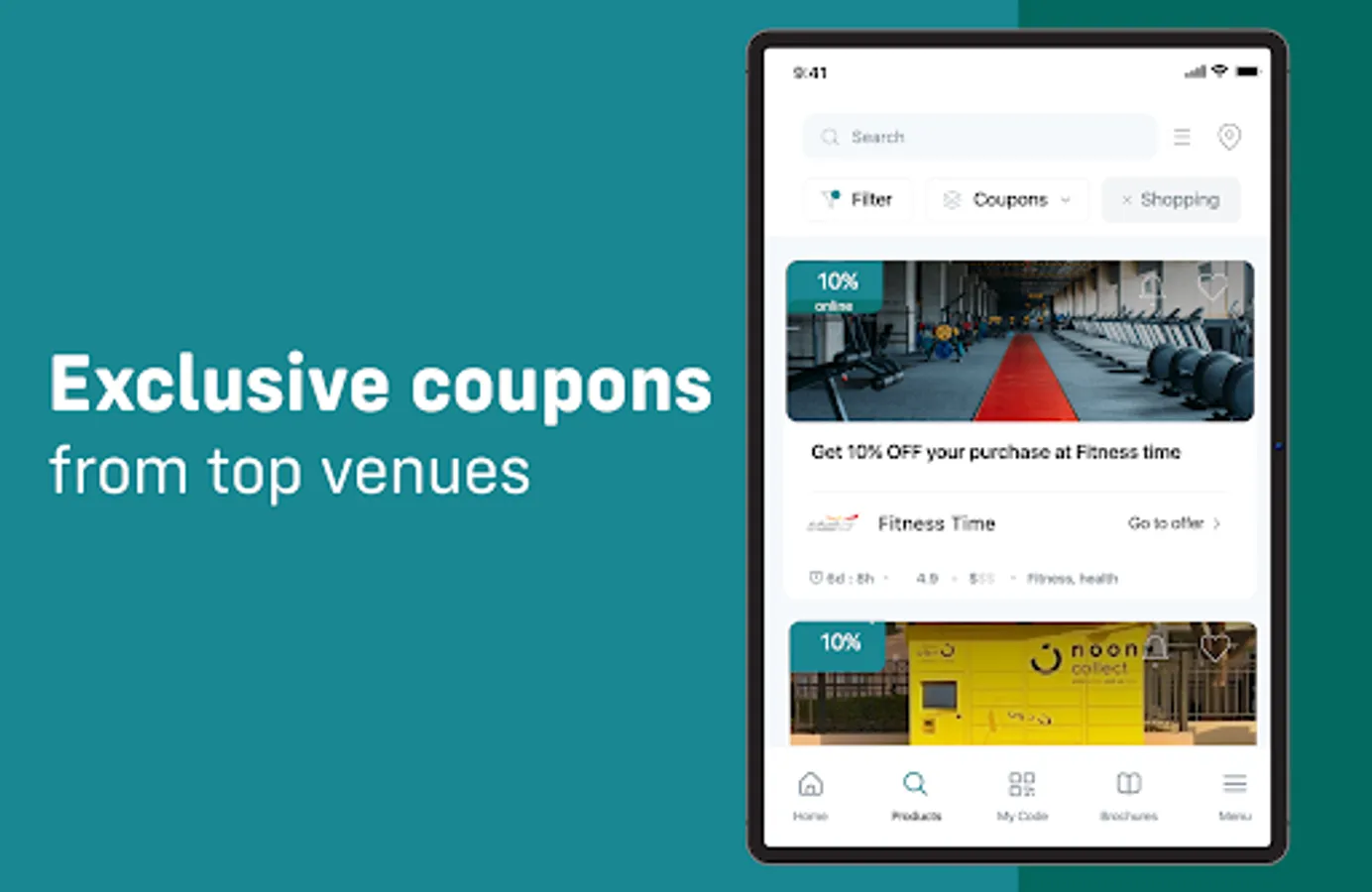 Get the best price for selected goods and services by purchasing in-app coupons from famous brands!