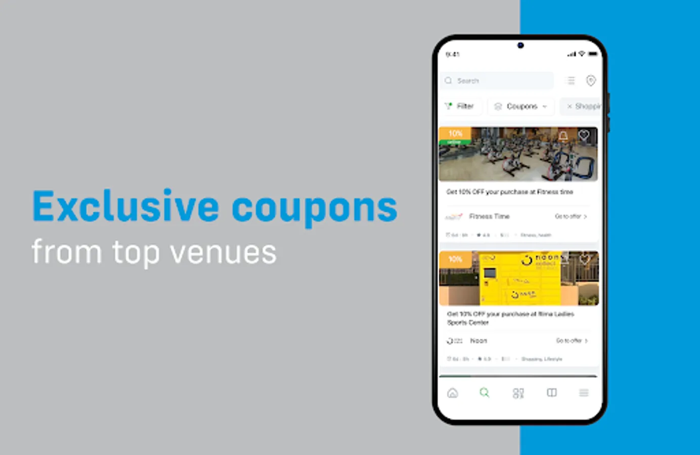 Get the best price for selected goods and services by purchasing in-app coupons from famous brands!