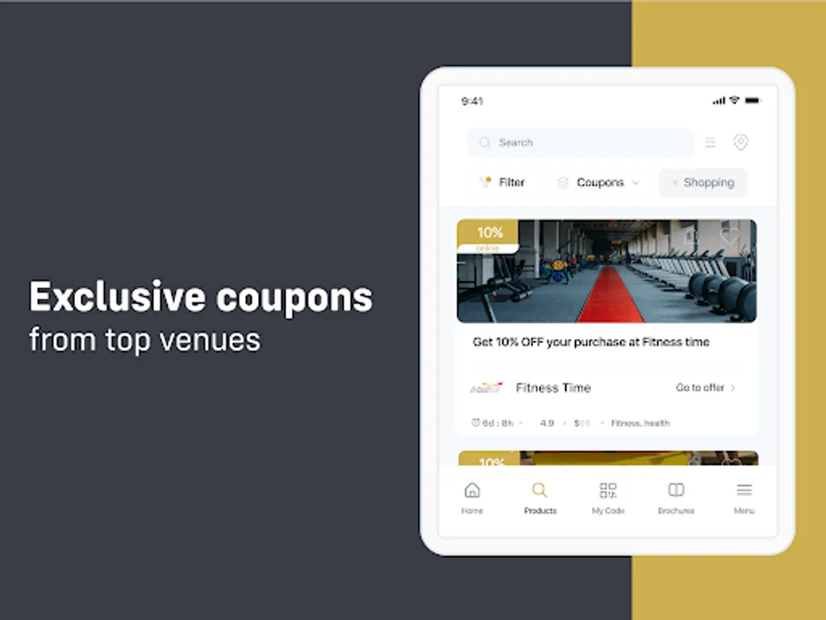Get the best price for selected goods and services by purchasing in-app coupons from famous brands!