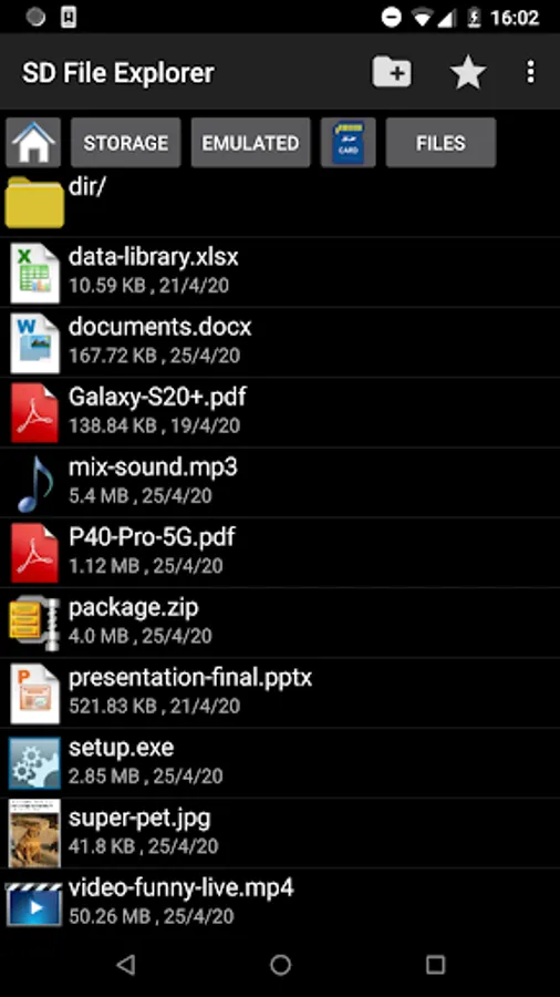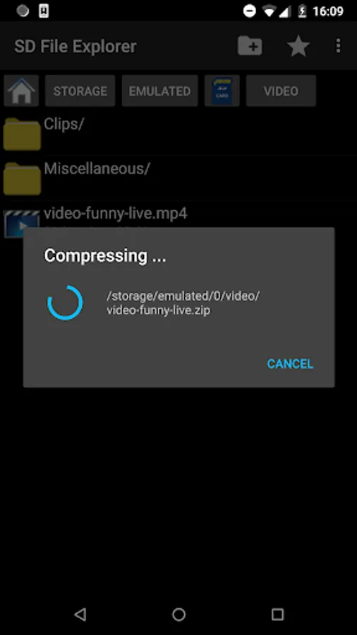 The app allows you browse the SD card and the internal storage of your device. You can create, copy, move, rename and delete files and folders. Moreover, you can compress and decompress files ZIP.