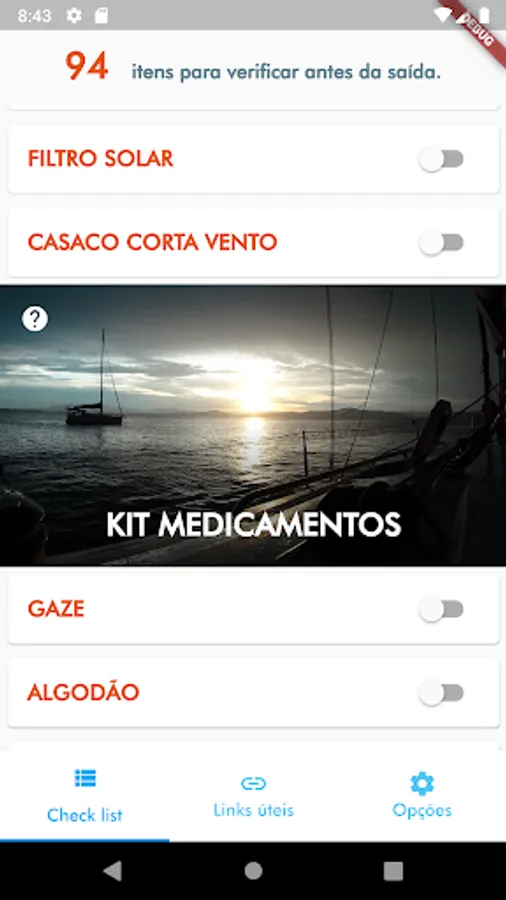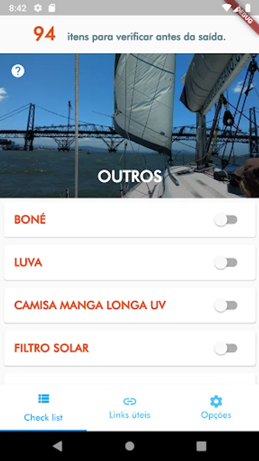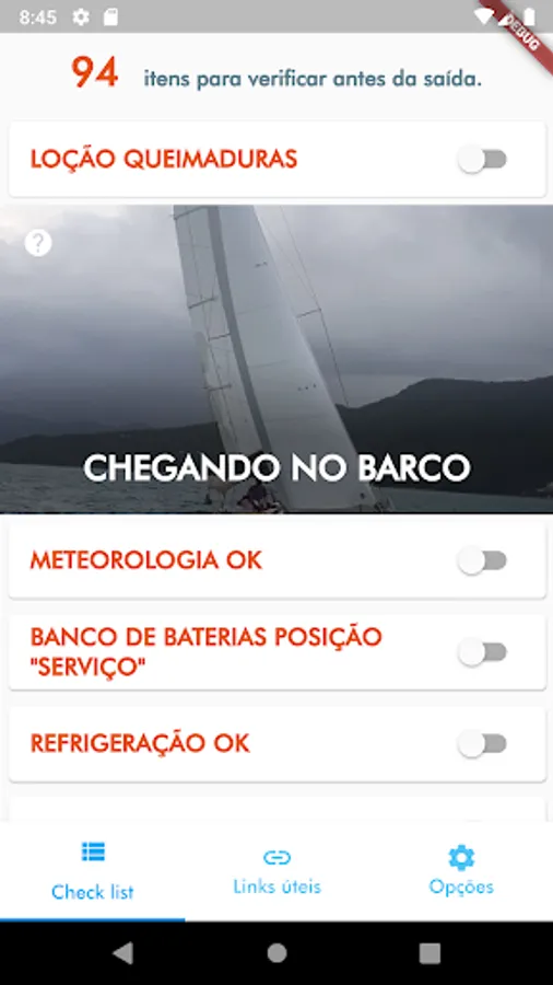 List of safety items that should be checked before starting a sail.