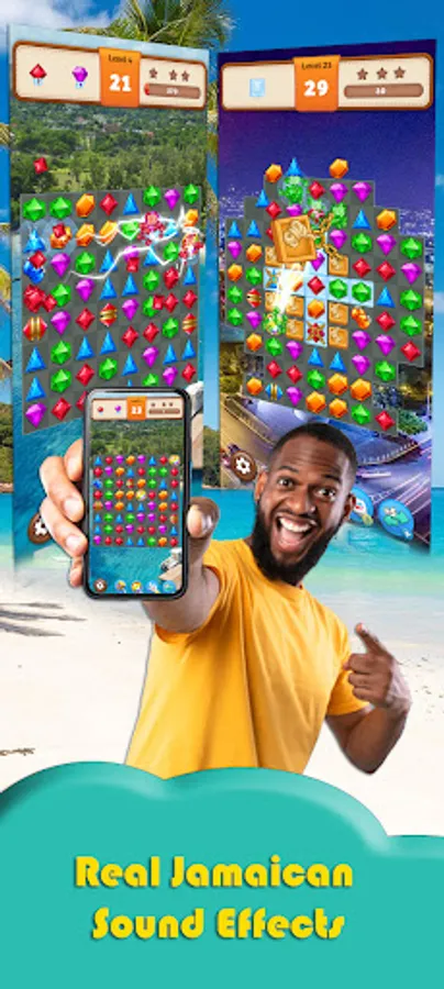 An iconic Match 3 puzzle game with a Caribbean flavour offering you a great gaming experience filled with relaxation and fun. Enjoy 99+ levels, and compete with friends worldwide. Accompany Rasta Greg and rush through the gem-matching world. Swipe to eliminate your trouble and receive endless joy. Mind-blowing infinite combos that you can't stop and won't stop.