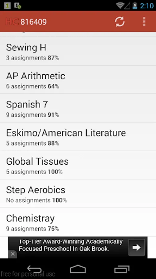 Hinsdale Central students on Android can now view their grades on Home Access Center super easily.