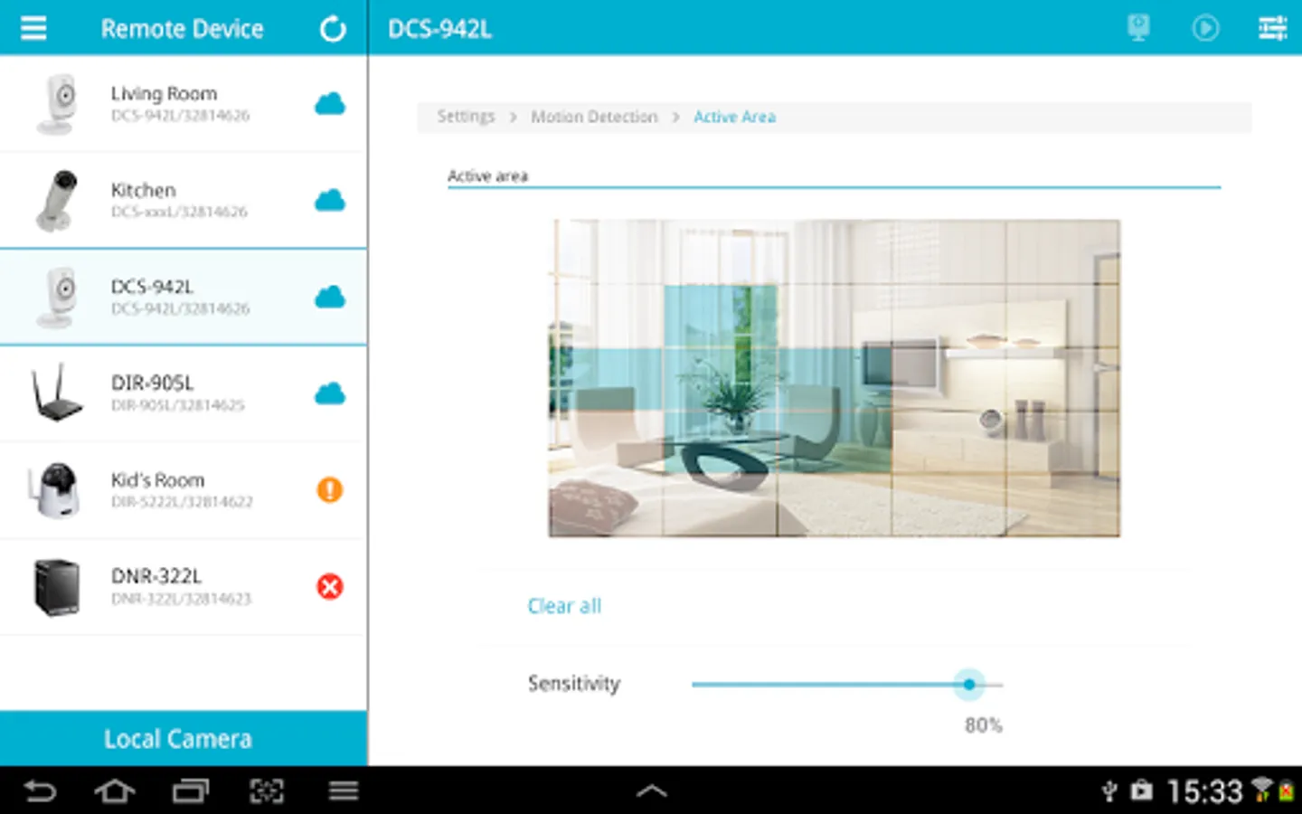 - After initial settings on the mydlink website, you can enable/disable motion/sound detection from the app for supported cameras.