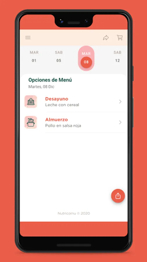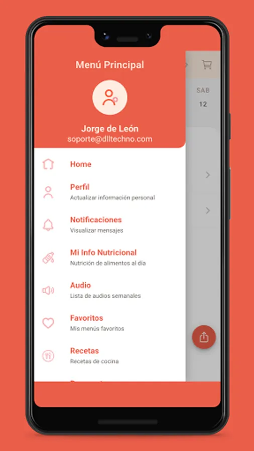 Access to an application. There you will receive your suggested portions, menus and the possibility of making ingredient substitutions, recipes, a list of supermarkets, motivational messages and training audios.
