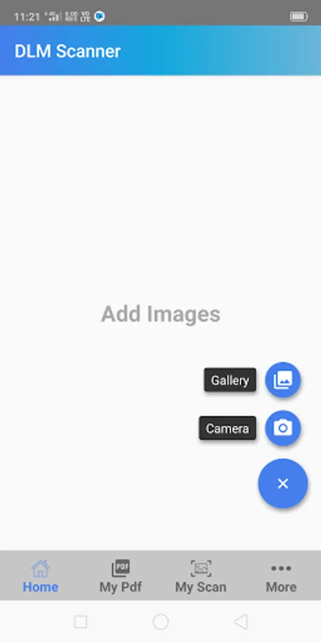1. Select image/images from gallery with + icon. Use Camera to scan documents or take pictures, select them and convert to PDF.