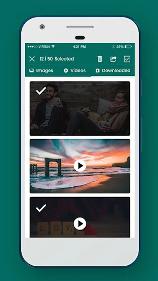 6. Go to Saved tab and all saved images/videos will be available. Select specific images/videos and share it