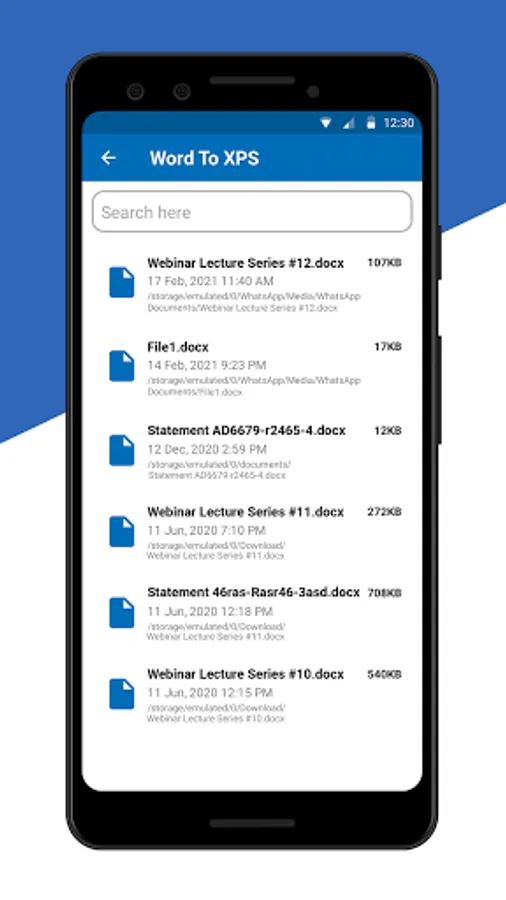 1. Select word document from various sources like Google drive, Cloud, file navigation or file list and proceed to convert.