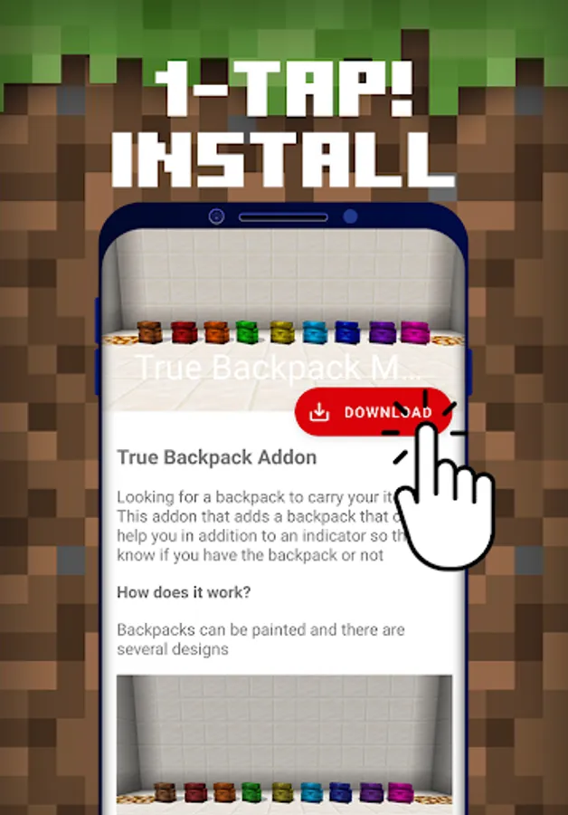 True Backpack Addon for Minecraft PE is a free downloadable content for Minecraft Pocket Edition game, where you can automatically download & install newest version of True Backpack mod into your Minecraft world.