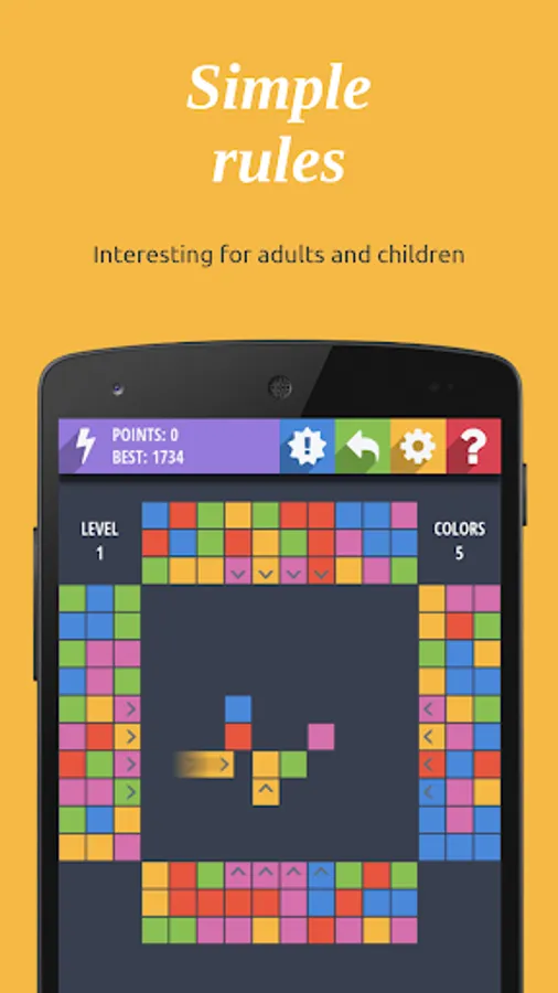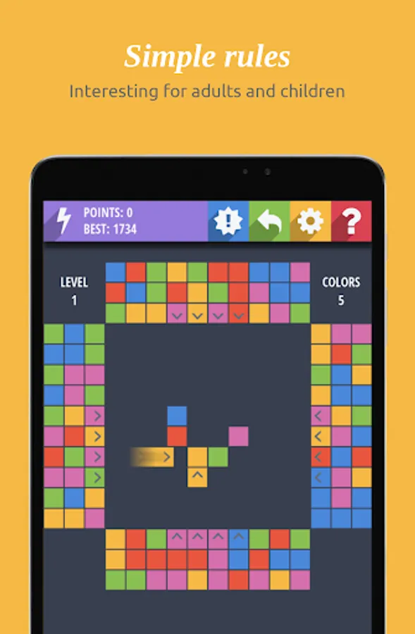 At levels with a small number of colors, the game will be interesting even to younger students. At the highest levels, even adult players will encounter difficulties.