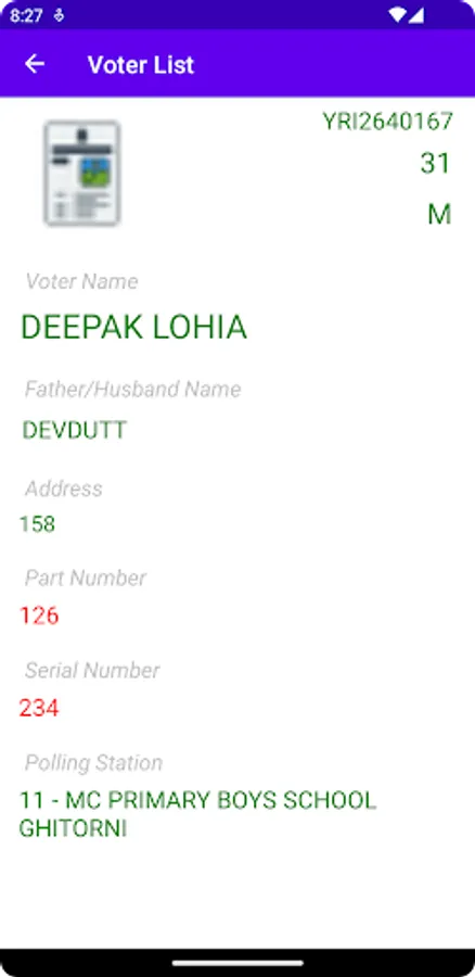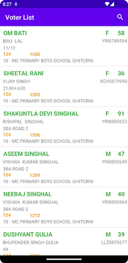 MCD Voter List Provides easy search option by the name, YRI number or address. During the election times, most of the apps crashes due to huge data . With this app, we can search within Ayanagar ward database in an easy and efficient way. If user holds voter id ,search by YRI number to get part number and serial number of the polling station. If user doesn’t hold a voter id , Search with name or father's name or address.