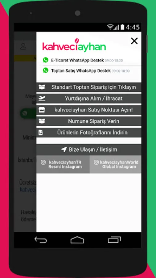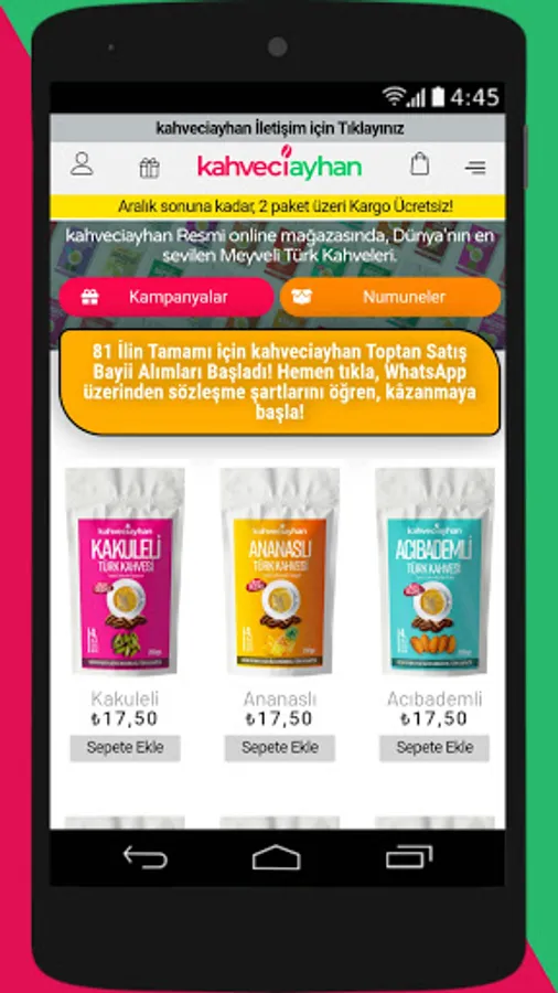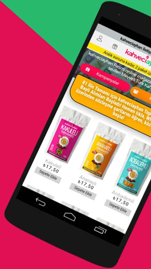 You can see all products, place an order and view the shipping status of your order via Kahveci Ayhan mobile application. You can also become a reseller and access the Reseller Store with the reseller login.