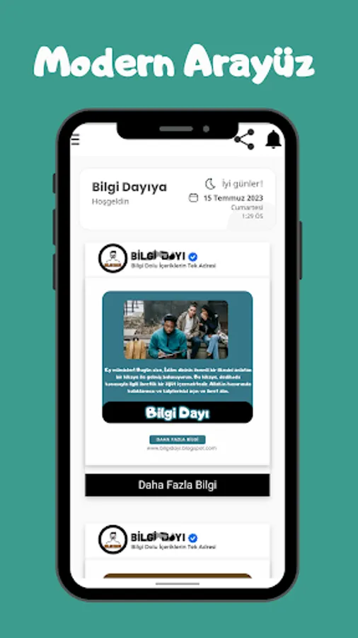 Bilgi Dayı application presents news, information and content collected from hundreds of different sources every day to its users. By using the application, users can be informed about current events, follow new technological developments, learn interesting information and have information on many other subjects.