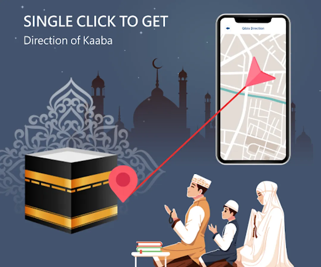 - Route, navigation and distance to Kaaba.
