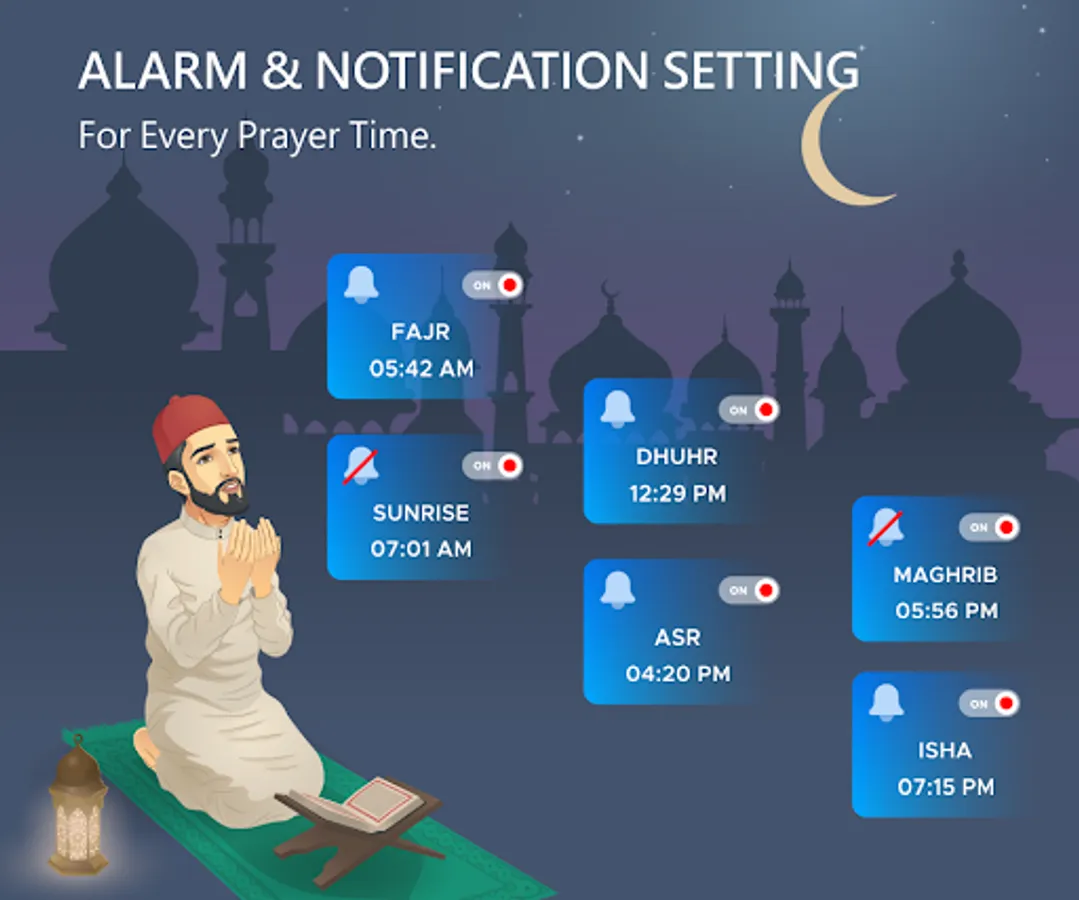 - Alarm and notification reminder for prayer time.