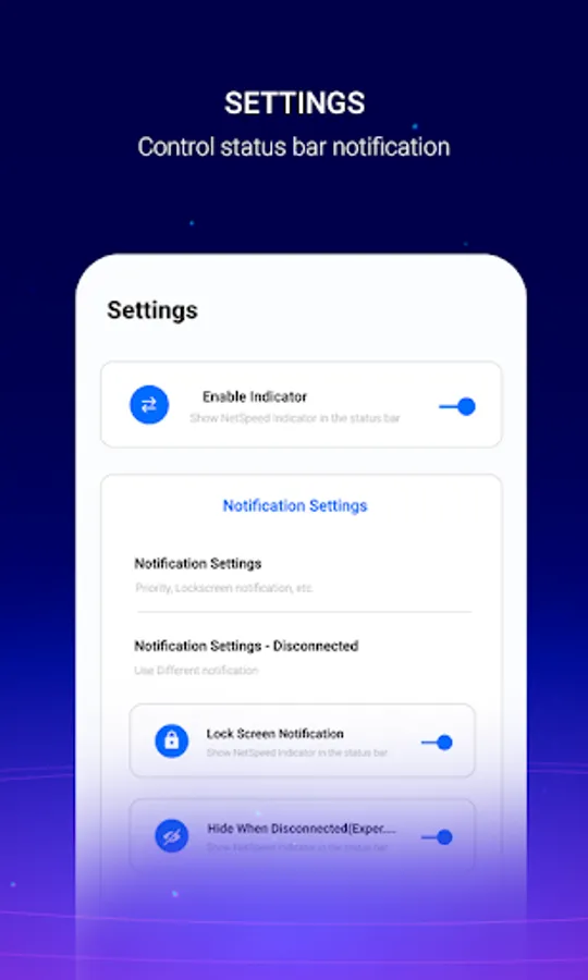 -- Shows you live Internet speed on your status bar. Download Speed and Upload Speed.