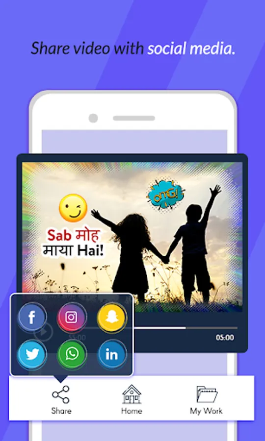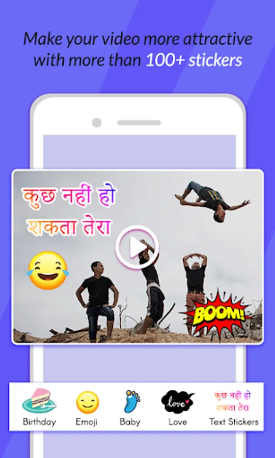 - Add stickers on Video and express your mood, love, thoughts, etc,.
