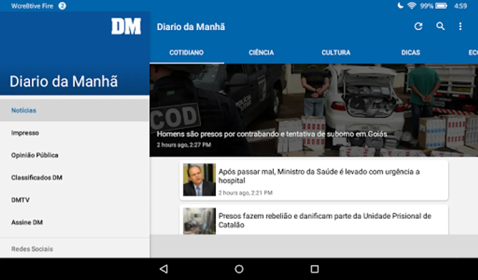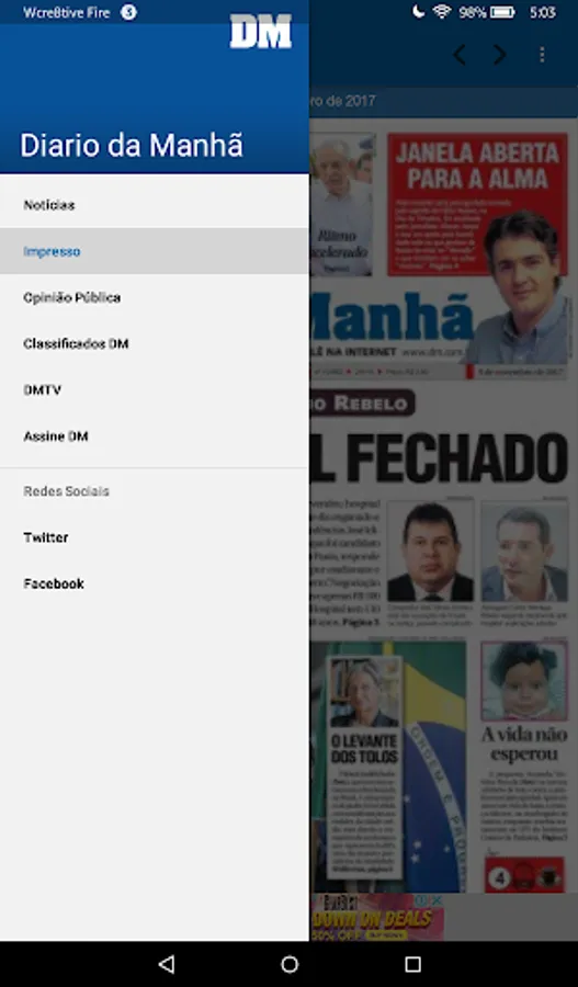 Application also provides access to the printed content, allowing the player to have the experience of reading on your device, the printed pages of the newspaper Diário da Manhã.