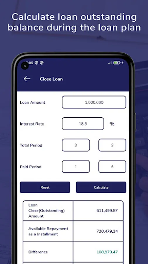 If you want to close the loan, you can calculate the outstanding amount of the loan using the Loan Calculator app.