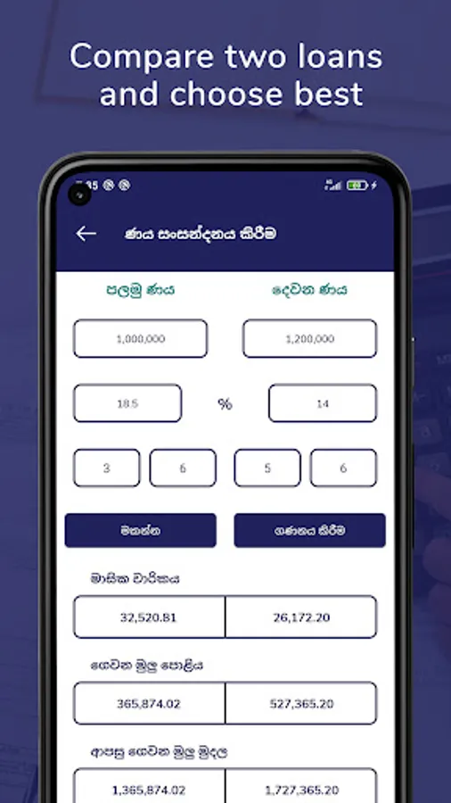 Loan Calculator app can help you to compare two loans on a single screen and find the best loan.