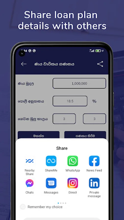 EMI Calculator app helps you to share Loan plan details with your friends easily.