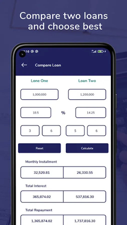 Loan Calculator app can help you to compare two loans on a single screen and find the best loan.👌