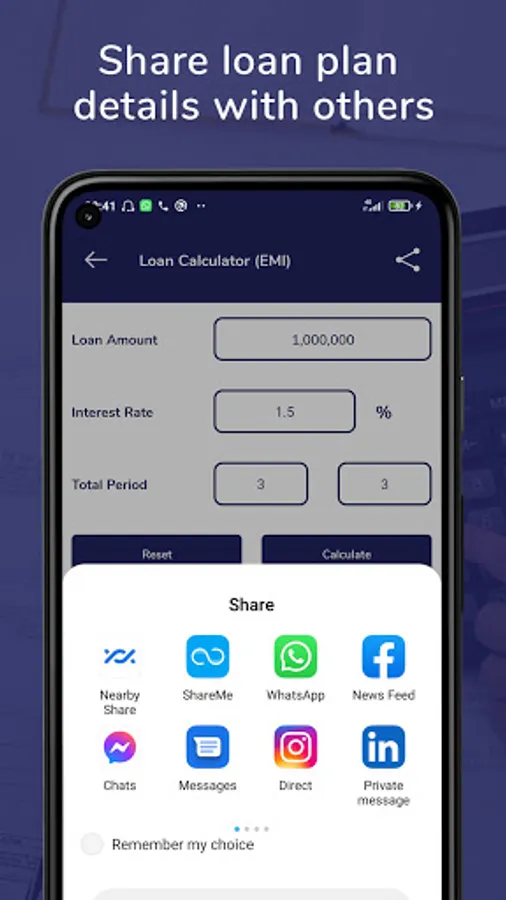 EMI Calculator app helps you to share Loan plan details with your friends easily.😍