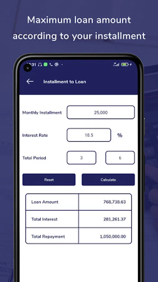 Choose the maximum loan amount according to your monthly installment using this app.😇
