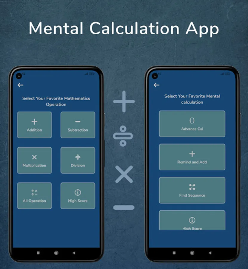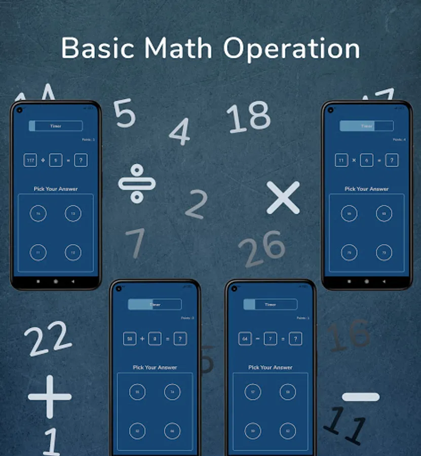 The Basic Arithmetic Operations(Addition, Subtraction, Multiplication, Division) are in this Mental Maths app to training your Brain.