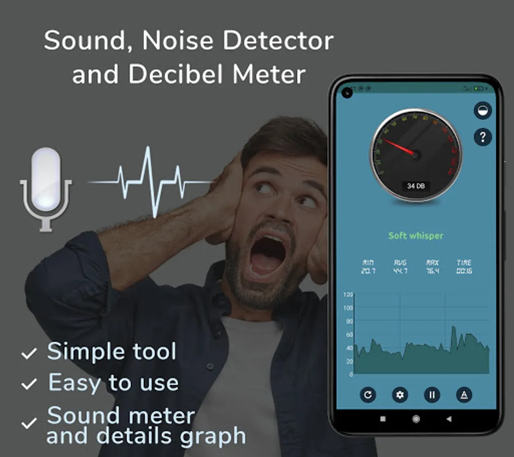 Noise, Sound, Voice detector: Sound Meter app can easily use to detect much louder or too low sound. 👌
