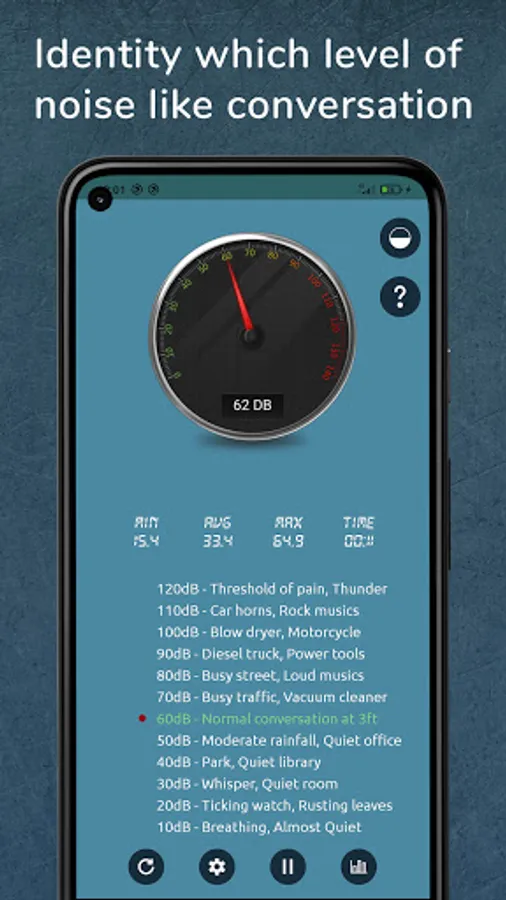 Sound detector: Sound Meter app can use to detect what kind of sound like Breathing, Conversation, Motorcycle, etc