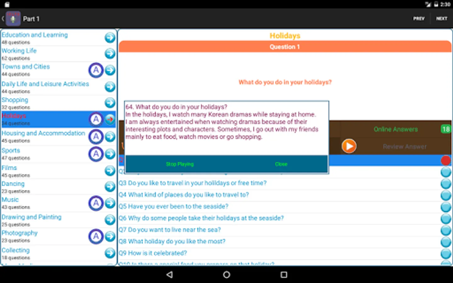 Sample answers are also available for some tests and topics, helping IELTS candidates at all levels be able to improve their speaking ability.