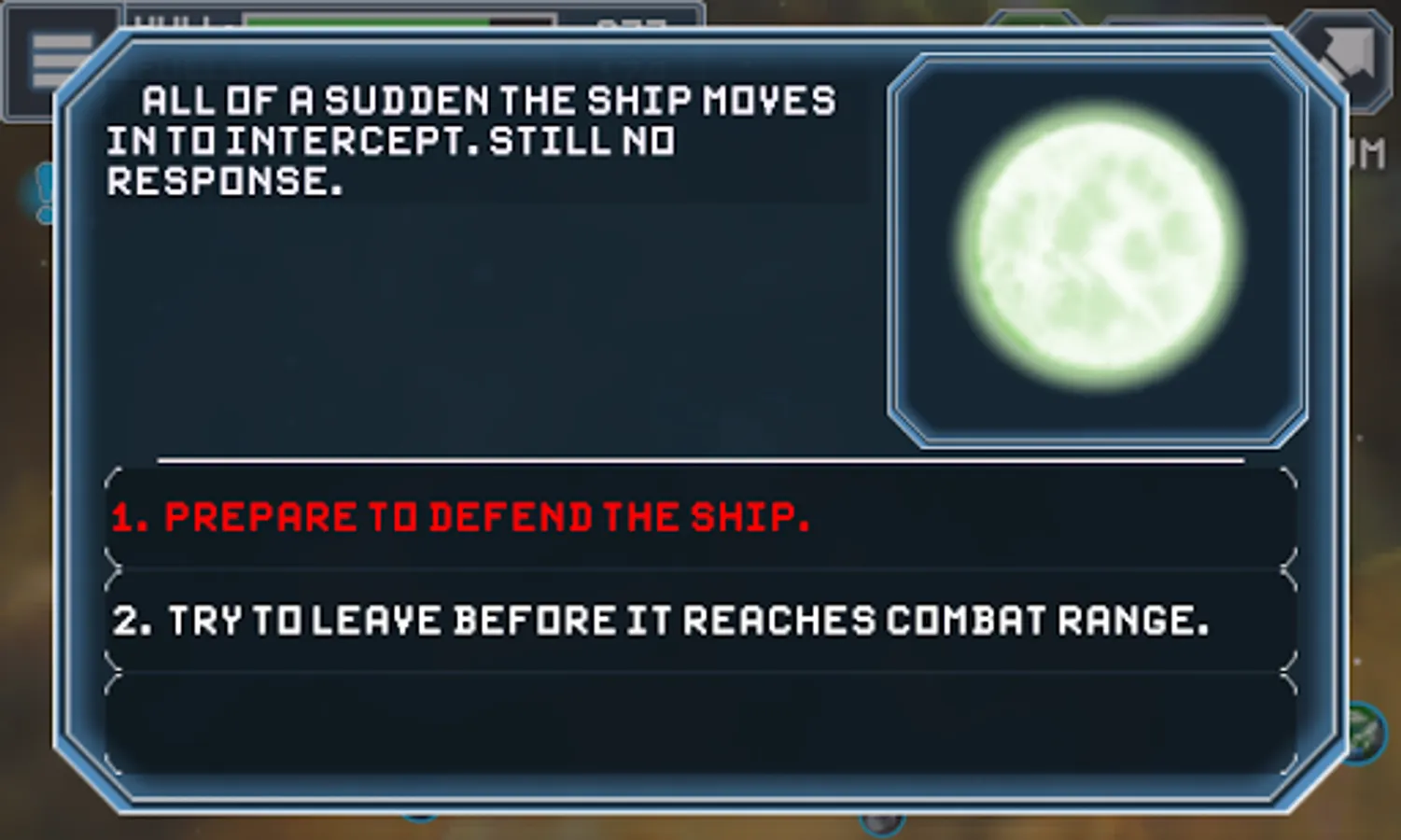 Fight off hostile ships. You can distribute power to your ship's weapons, shields or engines to gain an upper hand. But be careful, powering a system will drain power from the other two and make them weaker!