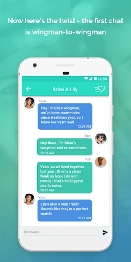 * Dating made fun as your wingmen join the conversation and talk you up.