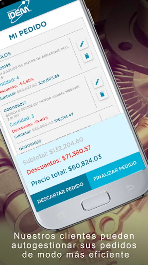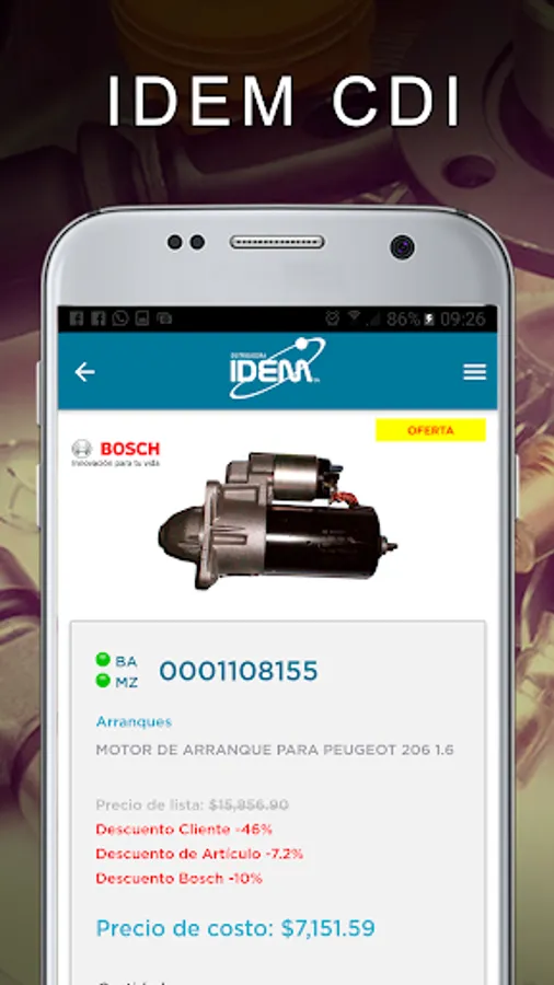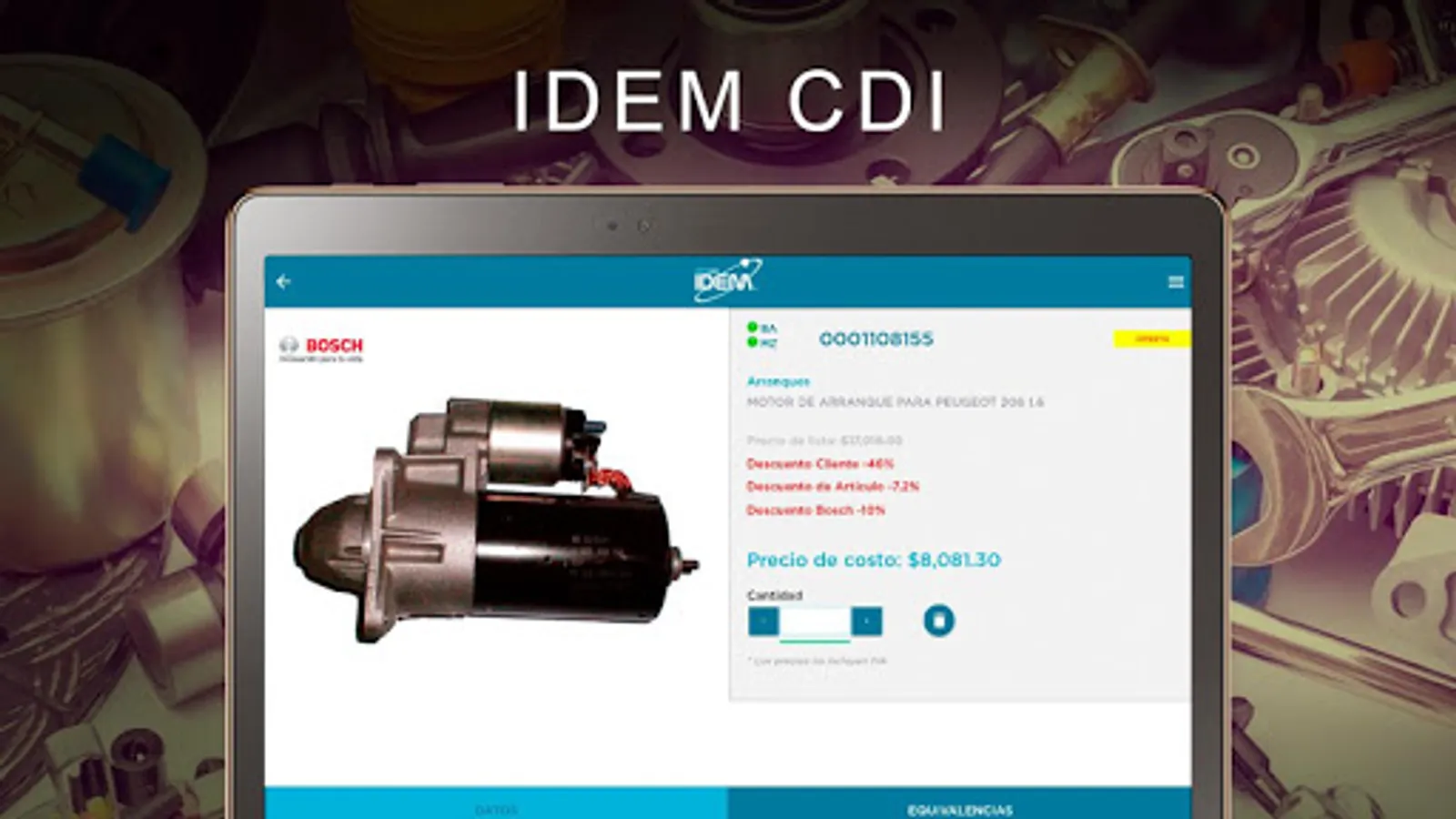 IDEM CDI, is the most complete auto parts catalog in Argentina. It is an essential tool that will allow you to find the products you need. Our customers can self-manage their orders more efficiently. It presents an easy-to-use interface. Optimized for use on any mobile device or tablet.