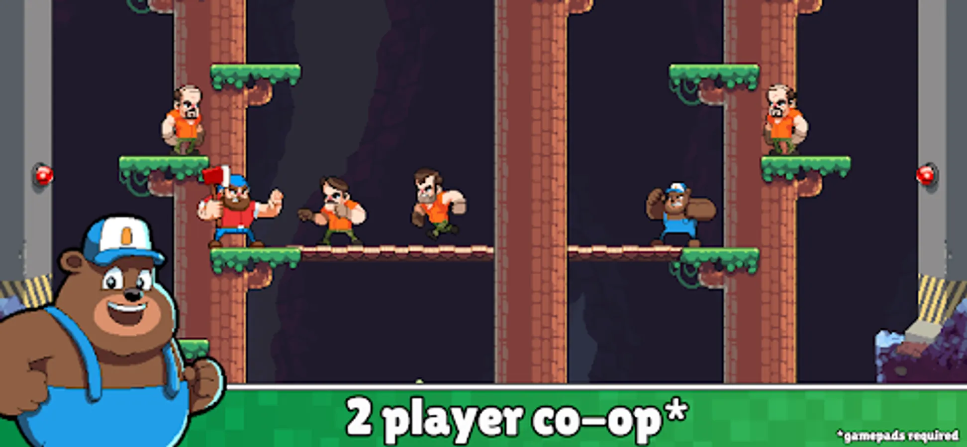Timberman The Big Adventure offers also 2 player co-op mode to play with your friend (gamepad required).