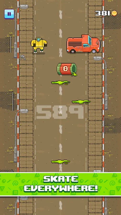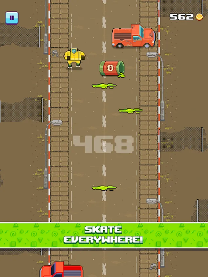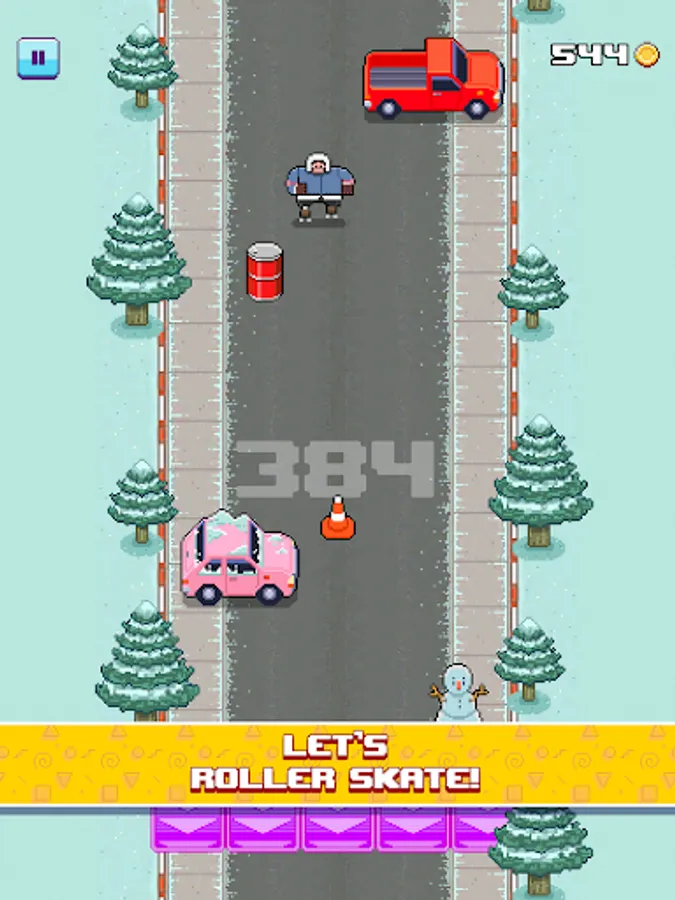 Roller-skate as far as you can! Jump over the river and get to the new world!