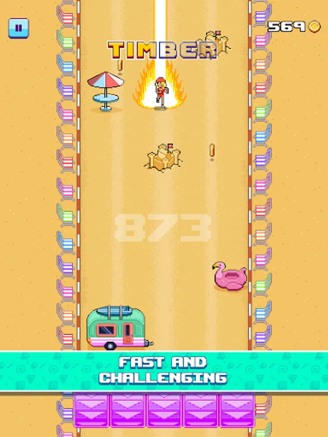 Test your skills in this funny fast paced arcade game where Timberman goes roller skating!