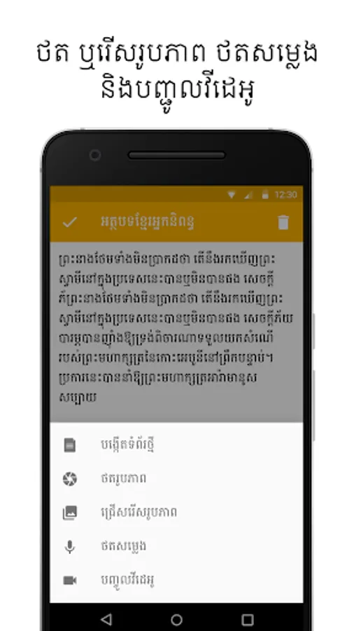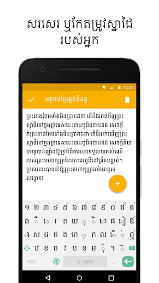 Khmer Writer is an application enables users to create their own content such as short stories, books, supported by audio and/or visual features, pictures, videos, made available for download after meeting criteria. The app will make it possible for individual authors to generate new content for Khmer Library app. Moderation by project staff and national writers associations in addition to annual competition will ensure highest quality.