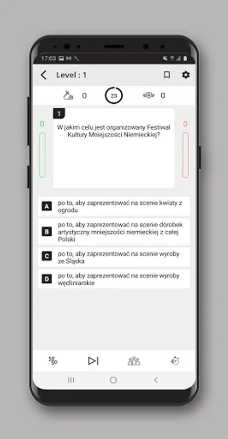 The mobile app DMI Quiz is primarily intended for members and supporters of the Social-Cultural Society of Germans in Opole Silesia. It is aimed at young people who want to learn German and deepen their knowledge of the culture, history and life of the German minority living in Poland.