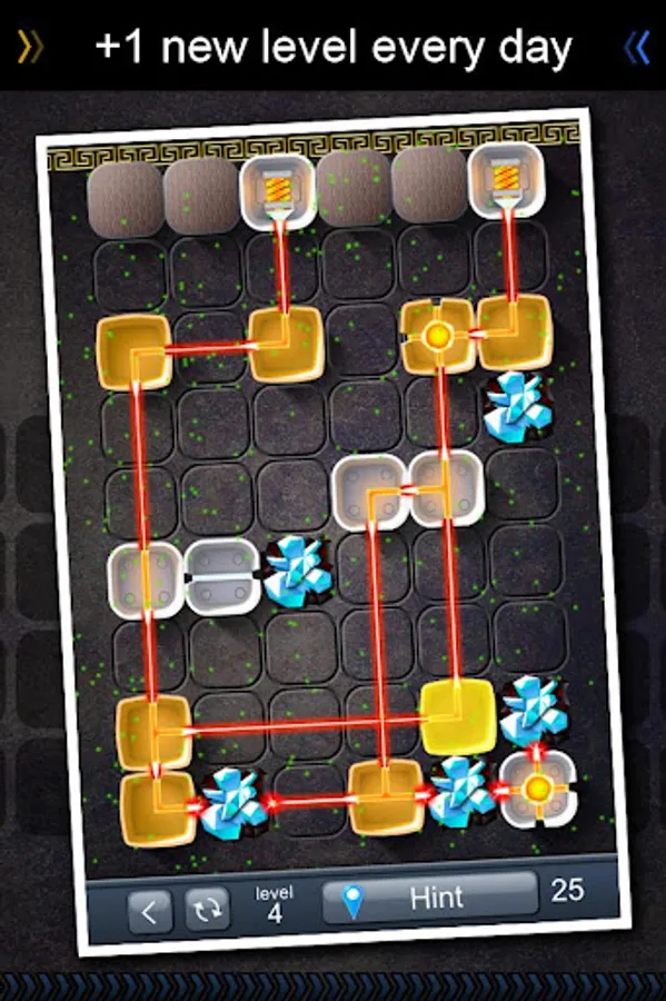 Move elements, activate the lazer receiver, get crystals, reach new chapters and levels!