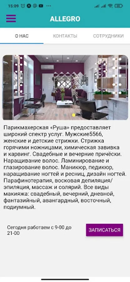 The application is suitable for salons, hairdressers, manicures.