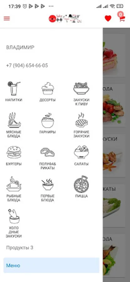Pizza, drinks, food, hot meal delivery application
