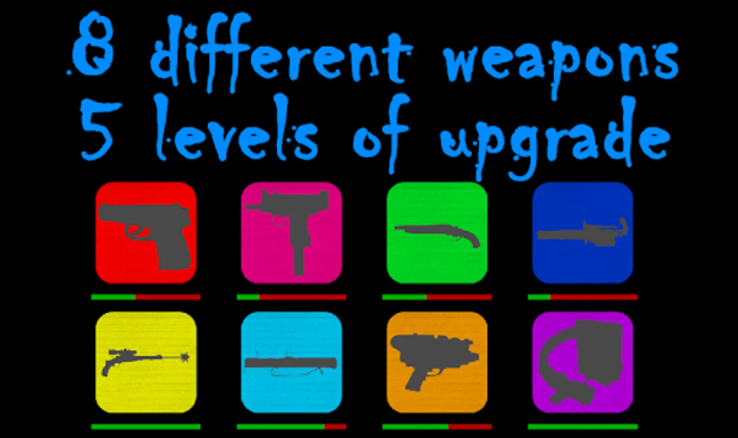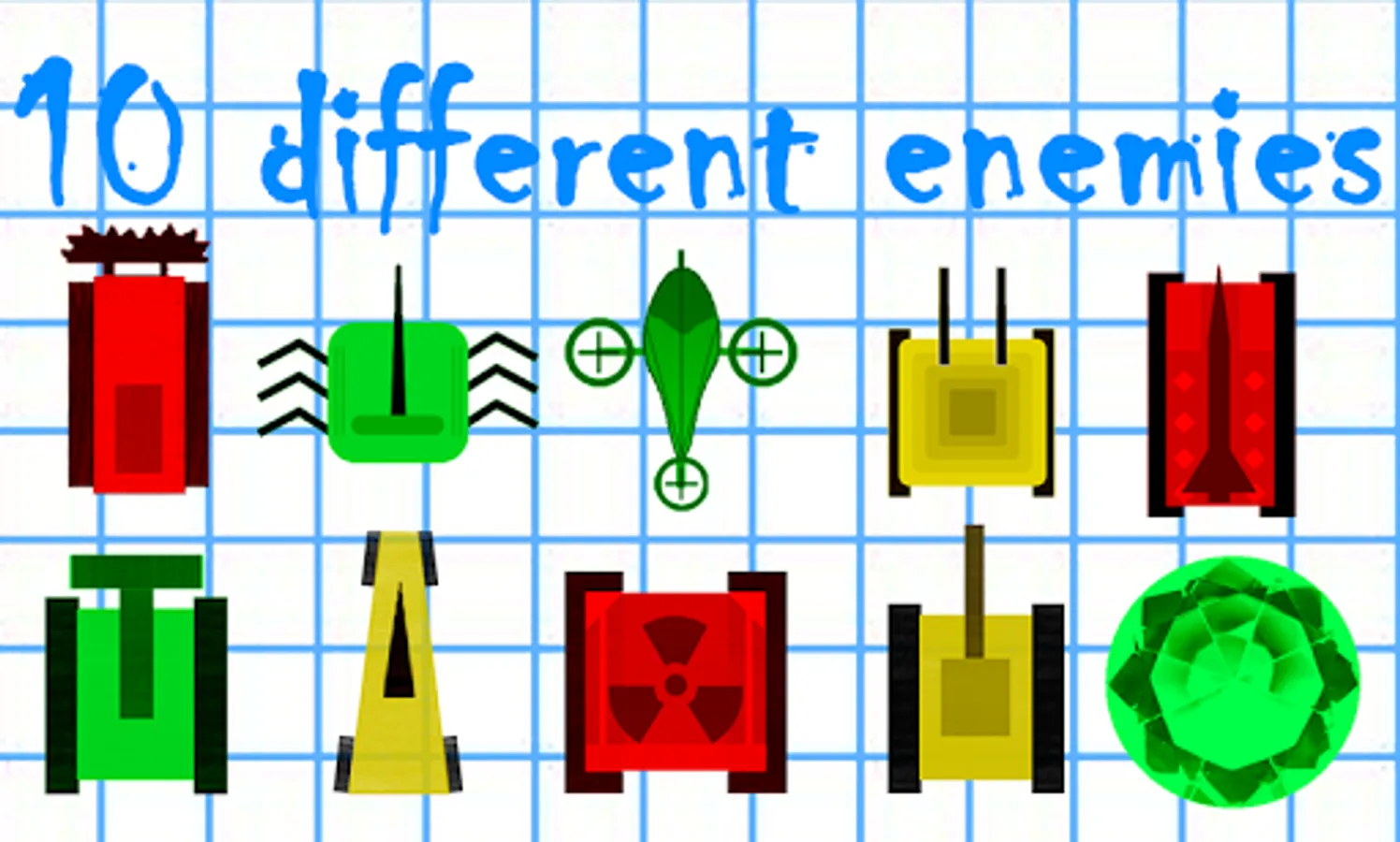 The war on notebook sheet! Destroy everything that moves! 8 different weapons and 5 skills will help you to survive in this endless action.